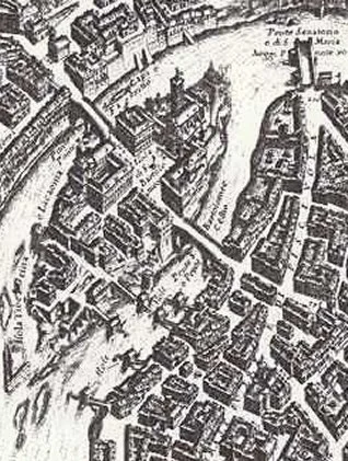 In particolare due mole sono rappresentate da Silvestro Peruzzi (1564-65) e dal Maggi (1625) (fig.B3); quest’ultimo le raffigura, chiaramente fuori scala, ancorate di fronte a S.Vincenzo e Anastasio alla Regola, più a monte di dove, probabilmente, fossero nella in realtà.