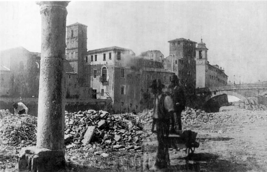 C5 - Demolizioni per la costruzione dei muraglioni: una colonna è quello che resta di un edificio medievale sul lato sinistro dell'isola Tiberina, attuale Lungotevere dei Pierleoni (foto di E.R.Franz)