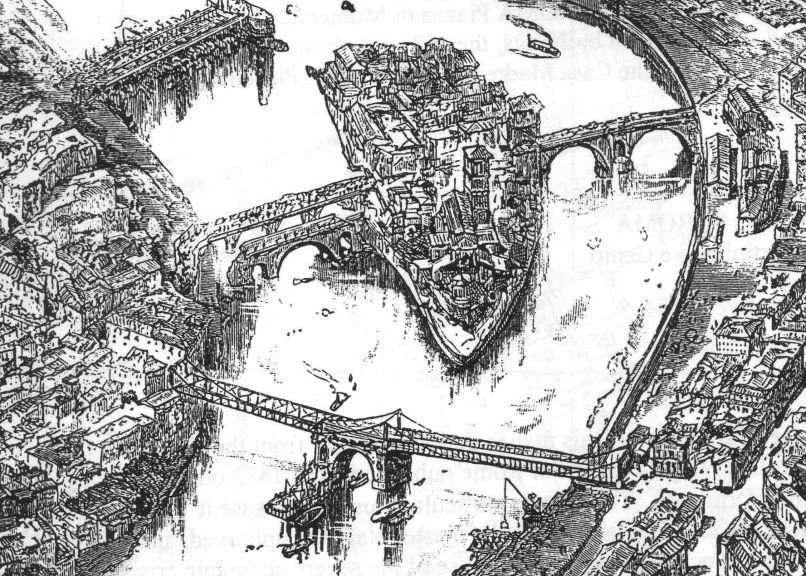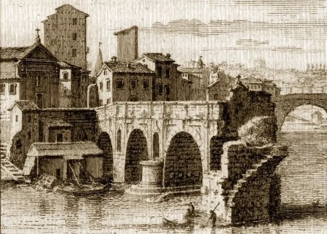 Di fondamentale importanza è il disegno dell'architetto Giovanni Antonio Dosio che mostra nella parte inferiore il pilone e gli archi crollati e la dicitura "Vestigie del Ponte S.Maria Ruinato p. la inondatione del Tevere l'anno 1557" (fig.4) e nella parte superiore, il ponte alla fine del completo restauro del 1575 in cui è visibile il nuovo pilone con il basamento rinforzato da frangiflutti a gradoni e i due nuovi archi con le insegne del papa Gregorio XIII (i draghi della famiglia Boncompagni) nelle lunette degli archi e alla sommità degli archi stessi.