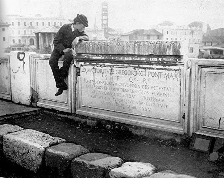 [Per volere di papa Gregorio XIII il Comune di Roma nell'anno giubilare 1575 restituì alla primitiva robustezza e bellezza il Ponte Senatorio i cui fornici, caduti per l'antichità e già in precedenza restaurati, l'impeto del fiume aveva nuovamente abbattuto]
